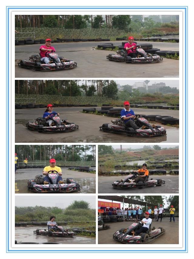 在活动开始之前,裕达新精英们在主持人的指导下完成了团队组建,五颜六色的队服鲜活了原本萧瑟寂寥的雨晨,在各小组嘹亮的队名及口号声中,第一个户外拓展项目“卡丁车”正式开始。