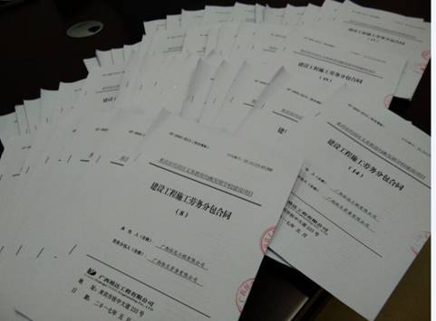图为现场签订完成的劳务分包合同展示