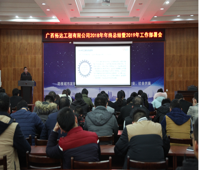 随后,罗文宁副总经理代表公司对2019年工作进行了部署,要求公司全体员工认真贯彻落实集团“保品质、快周转、促转型、守底线、强管理、育人才”经营指导思想,强化工作方法与举措创新,全面推进五大方面重点工作:一是创新经营模式,确保公司经营指标完成;二是深化改革改制,提升管理绩效;三是完善人才驱动因素,提升内涵发展能力;四是加强过程管控,构建裕达品质效应;五是强化风险防控,提升稳健发展能力。